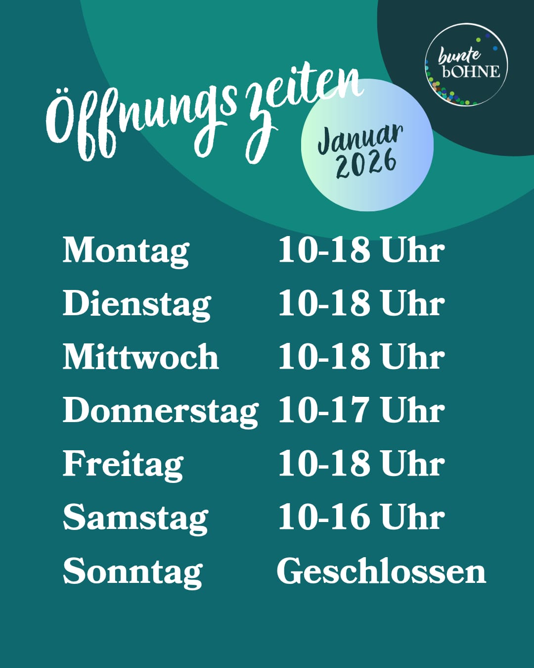 Öffnungszeiten im Januar